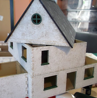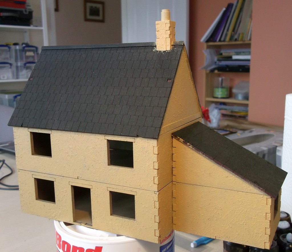 You'll see that the dovetailed corners give the impression of stone blocks. You could enhance this by adding your own blocks made from small squares or rectangles of thin card (I may try this out on another building) but for now I'm happy with the standard finish.