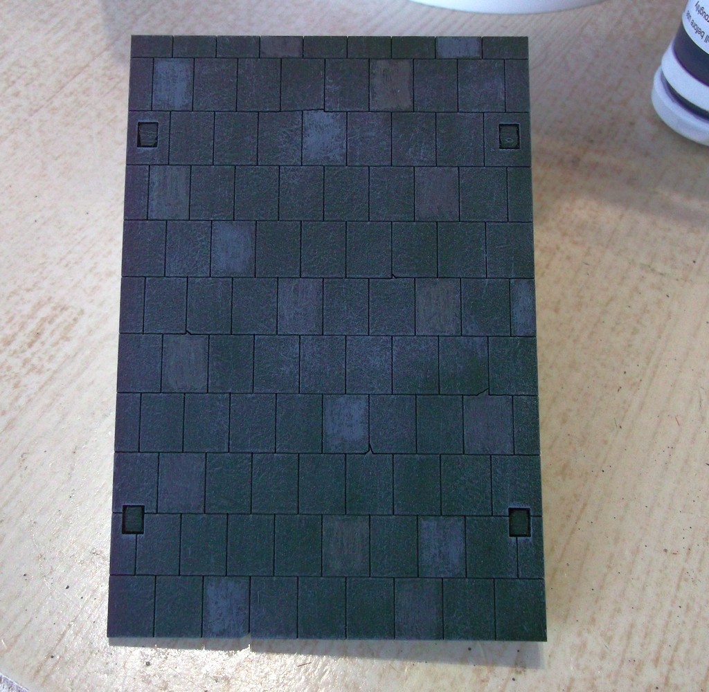 Roof: I suggest that you spray the tiled roof sections black or dark grey before you assemble them.